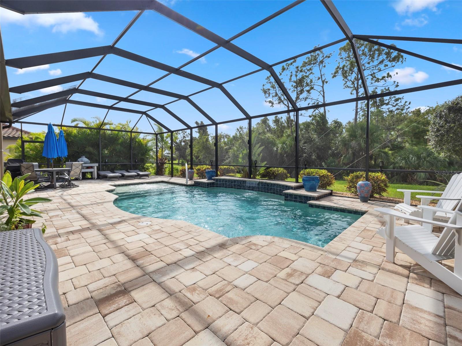 If privacy and a serene, wooded view is what you're looking for - this is the home for you! This 3 bedroom, 2 bath, 3-car garage pool home is nestled on a very private and oversized lot. With no home next door or behind, you'll enjoy quiet and relaxing time in your lanai. You will love the custom-designed heated saltwater pool with color-changing LED light, custom handrail, lanai LED lights, cypress wood lanai ceiling and wall mounted outside TV. This area is the ultimate spot for entertaining! Interior upgrades include: custom trim & built-in living room cabinets, wall-mounted TV, quartz countertops, over and under-cabinet lighting, upgraded appliances, frameless glass shower enclosure, ceiling fans, custom closets, front door invisible screen, built-in ironing board, surge protector and garage storage. Outside, you'll find: beautiful landscaping with flower bed curbing and stone, hurricane shutters, roof vent baffles and gutters. No carpet in this home! All of this, in a fantastic location! Just 2.4 miles to vibrant Downtown Wellen Park, 3 miles to Cool Today Park and 8.5 miles to the nearest beach. Shops, restaurants and medical facilities nearby, along with easy access to I-75 and all area airports. Gran Paradiso is a fantastic, Tuscan-style gated community. Abundant amenities, including: full time activities director, resort-style pool and spa, tennis, basketball, pickleball, state-of-the-art fitness center, sauna & steam rooms, billiards room and ping pong. Included in your HOA fees: access to all community amenities, mowing & edging, cable, internet and daytime gate guard. This type of home - on a lot this private - doesn't come along often! Schedule your private showing today!
