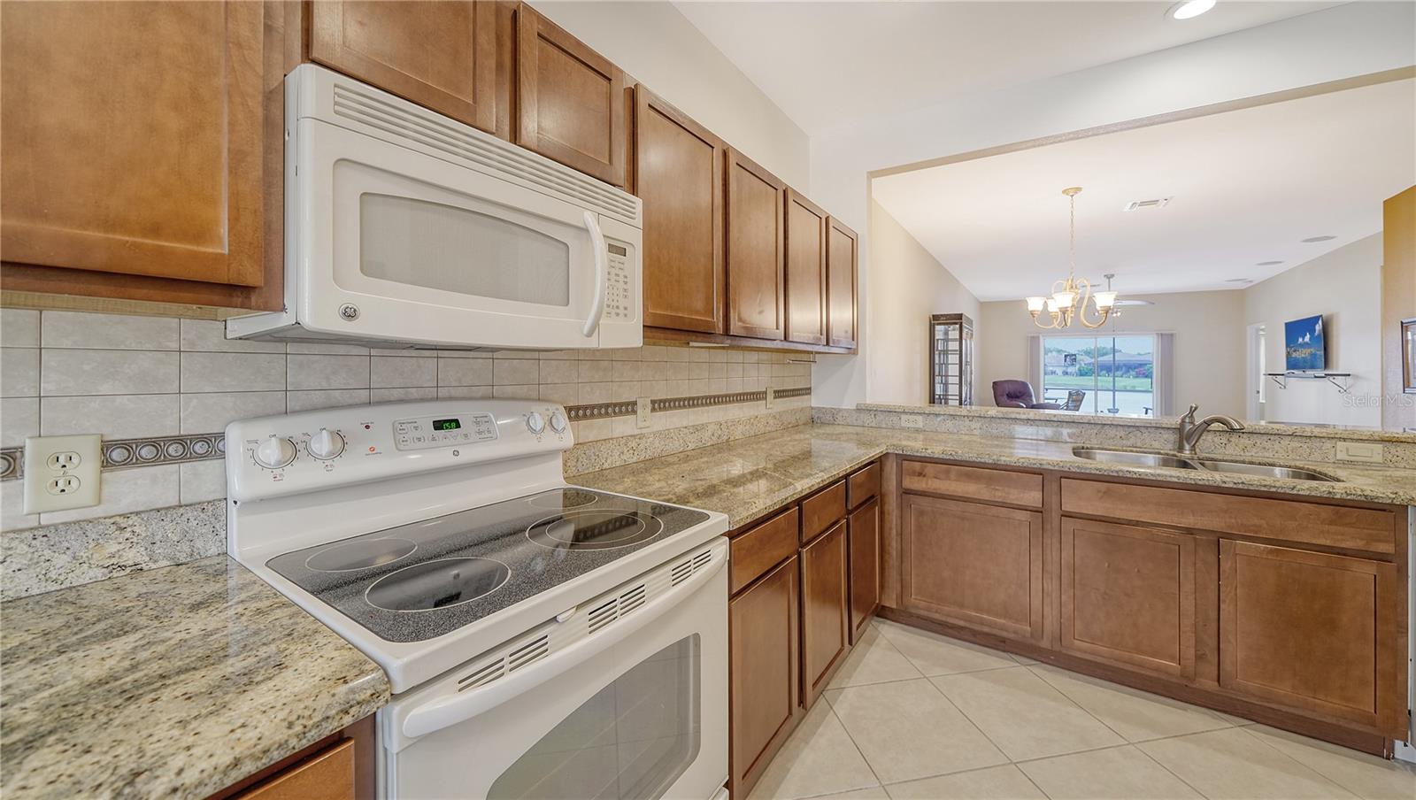 The kitchen is a culinary delight, featuring luxury granite countertops, a coordinating backsplash, and sliding drawer cabinets for added convenience. Whether you're hosting a formal dinner or a casual gathering, this kitchen is sure to impress.